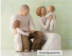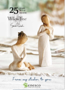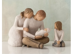 Artist Susan Lordi hand carves the original of each Willow Tree sculpture. Using family and friends as models, Susan tries to capture a moment in time, or express a feeling. Pieces are cast from her original carvings, and then individually painted by hand. Softly washed colours, carved and metal accents, and representative icons of nature mark Susan’s work.